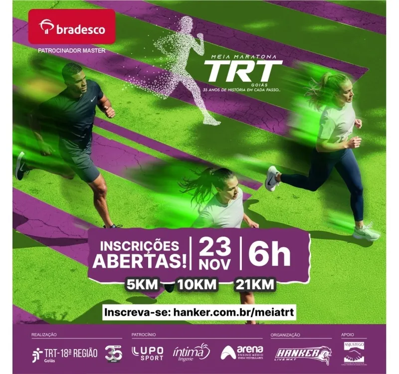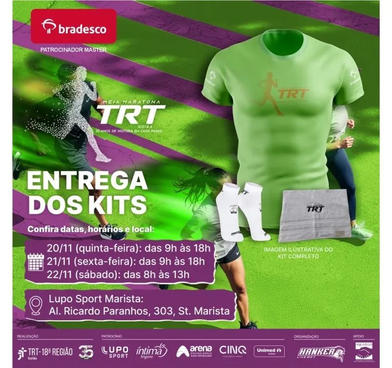 Quadra T 22, St. Bueno | CEP 74215-901, Goiânia, com percursos de 5km, 10km e 21km.